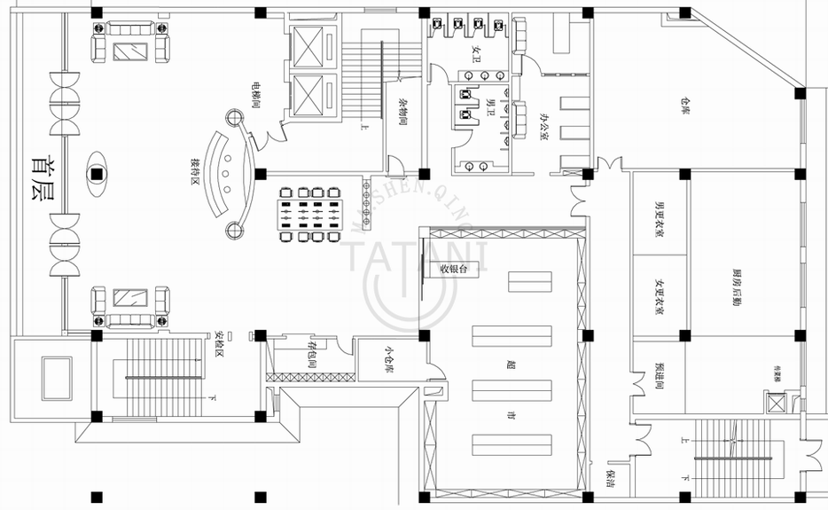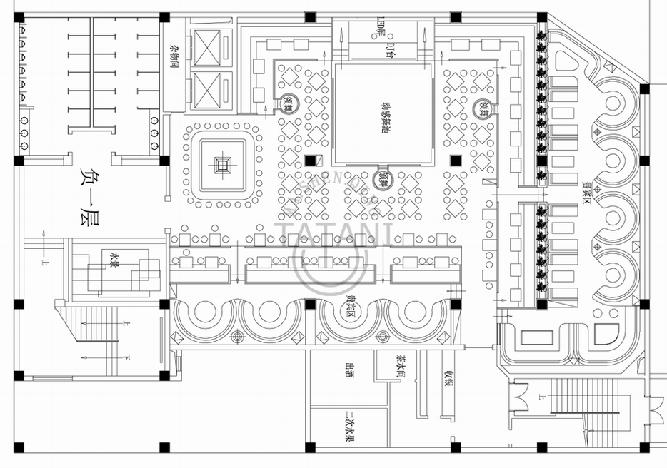 | 中國(guó)現(xiàn)在絕大部分人,因?yàn)楣ぷ骱蜕钪小疅o(wú)聲的’壓力,正處于情感枯寂期;已經(jīng)非煅煉、旅游和安靜的空間可以釋放,所以都要借助強(qiáng)烈刺激性氣氛來(lái)壓制,和熱鬧的人群來(lái)緩解心里的孤單;少數(shù)不喜歡,和不需要熱鬧的人,又多數(shù)喜歡宅在家里;因此氣氛對(duì)于酒吧來(lái)說(shuō)很重要;如何來(lái)體現(xiàn)氣氛,以人的五官六感為例,首先是聽(tīng)覺(jué)和視覺(jué),這兩樣?xùn)|西起到關(guān)鍵的引導(dǎo)作用,一、聽(tīng)覺(jué)主要是聲音,而聲音主要來(lái)源是音響,但聲音不是越高越好,音響的控制和調(diào)節(jié)很重要,在音響配合設(shè)計(jì)的角度上,音響,分為聲音和聲波,1、以聲音為例,一米距離為例,10比0為完全音響遮蓋酒吧客人的正常談話聲,那5.5比4.5至6比4左右為好,這個(gè)很難以分貝去算,也就是以音響聲音的分布與顧客談話聲一比一偏高一點(diǎn)為好,最高最好不要超過(guò)8成,否則會(huì)對(duì)顧客的聊天交流造成困擾;2、聲波,聲音主要以介質(zhì)振動(dòng)傳播,強(qiáng)大的聲音會(huì)對(duì)通過(guò)空氣造成聲波或者說(shuō)是聲浪,高強(qiáng)度反復(fù)折射的聲波,會(huì)對(duì)人體產(chǎn)生合圍狀,對(duì)人的心肺產(chǎn)生很大壓力;所以以前設(shè)計(jì)大量使用軟包,就是用來(lái)消減聲浪的反復(fù)作用,而后來(lái)不許用軟包了,就以背后凹凸不平,或者不同的折射造型面作為打散聲波的代替品,不少聲波會(huì)折射以影響,對(duì)消等不能對(duì)人體產(chǎn)生大面積合圍,以減輕對(duì)人體器官直接壓力,這兩點(diǎn)同樣適用于包房設(shè)計(jì)和音響預(yù)選;二、視覺(jué),酒吧和KTV的區(qū)別在于,酒吧是個(gè)復(fù)雜的環(huán)境,為了氣氛顯得熱鬧和人多,設(shè)計(jì)師會(huì)把兩桌的距離按排的很近,可以說(shuō)與鄰桌毫無(wú)關(guān)系的陌生人是背貼背,臂并臂的;這樣做可以讓客人產(chǎn)生置身人群中心的感覺(jué),臺(tái)面上微小的燈光,及自己的受光面,與背影形成了明顯的里面和外面,加上環(huán)境上昏暗閃爍的燈光效果,讓人可以忽略有可能與陌生人對(duì)視尷尬;也可以說(shuō)人意識(shí)中的空間范圍,是由光決定的,而不是以建筑決定的,如你置身伸手不見(jiàn)五指的環(huán)境,你就沒(méi)有空間概念了,給你一條燭光,你的空間就是可見(jiàn)范圍以內(nèi),這范圍當(dāng)然也包括之前照過(guò)的地方;如果有活動(dòng)的不定方向性威脅,那你的空間就只有光看得到的地方;也就是說(shuō)空間范圍,會(huì)因?yàn)槟愕淖⒁饬Ψ秶鴽Q定,而桌面上的酒、水、小食,也有這個(gè)效果,及你熟釆的人,也可以產(chǎn)生空間范圍的影響,而你身邊不熟悉的陌生人,也對(duì)你所以空間范圍出行了擠壓,但這些人和自己一樣各顧各的,相當(dāng)于路人,所以沒(méi)有顧忌性,因?yàn)樯磉叾际恰啡恕,自己的臺(tái)桌,就變成了擠身熱鬧人群中,的一個(gè)小小的空間,而我們?cè)O(shè)計(jì)的臺(tái)都要小,小吃不用多少就會(huì)顯得很滿,造成一個(gè)不貴的心理,和朋友擠在一起也變得更加親蜜,玩起來(lái)更加盡興;但因?yàn)殚L(zhǎng)期局限在這小小的空間,過(guò)于注意朋友和周邊的人,會(huì)產(chǎn)生心理壓力,甚至引發(fā)與鄰桌的過(guò)節(jié),所以要有表演和互動(dòng)節(jié)目來(lái)化解分散這個(gè)注意力,讓客人把心留在小小的空間,把注意力可以拉到外面,就算是在人群中對(duì)著臺(tái)上叫喊,旁邊的人也不會(huì)理你,甚至還會(huì)聲援支持你,這樣有朋友相處更好,因?yàn)橥娴谋M興,沒(méi)有壓力,也不貴,所以客人就喜歡來(lái)玩;但必須要有服務(wù)員,可以快速到達(dá),和依臺(tái)點(diǎn)餐的空間,所以設(shè)計(jì)的時(shí)候,還要著重考慮服務(wù)員這個(gè)環(huán)節(jié),而且人員配備是經(jīng)營(yíng)支出的大頭,很多酒吧失敗,就是從設(shè)計(jì)開始的;KTV這方面則相對(duì)簡(jiǎn)單很多,但同樣也講究氣氛,但只體現(xiàn)在燈光、音響、和裝飾環(huán)節(jié),而且講究大的空間,因?yàn)橛?jì)低消是由房間大小定的;以下以一個(gè)綜合性的為例子,只不過(guò)是量販的,選擇量販?zhǔn)揭驗(yàn)樗脑O(shè)計(jì)功能要求更多;其它類別我們?cè)O(shè)計(jì)的KTV,則在本網(wǎng)站可以找到; |