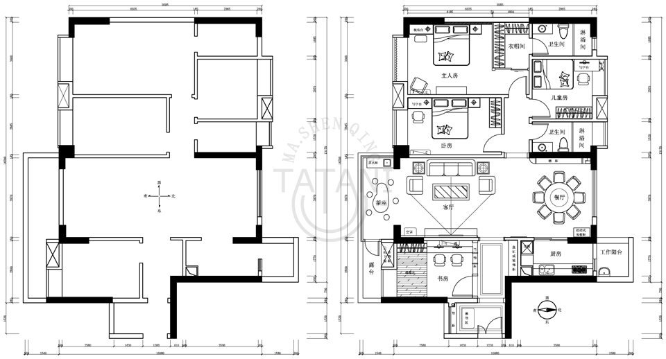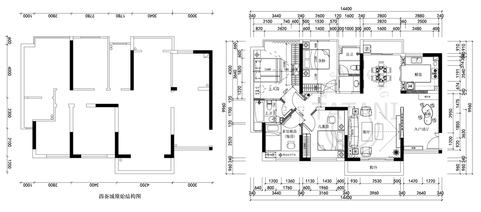 | 業(yè)主是建筑土建設(shè)計(jì)師,有一子一女,但陽臺(tái)高窗不可改動(dòng),他要求最好可以加上書房,介于廚房很窄卻砌成這樣,是因?yàn)槿霊糸T正對(duì)廚房門,很少人會(huì)買的原因,所以這個(gè)方案一出來業(yè)主非常滿意,第一天看到方案,當(dāng)天簽的; |