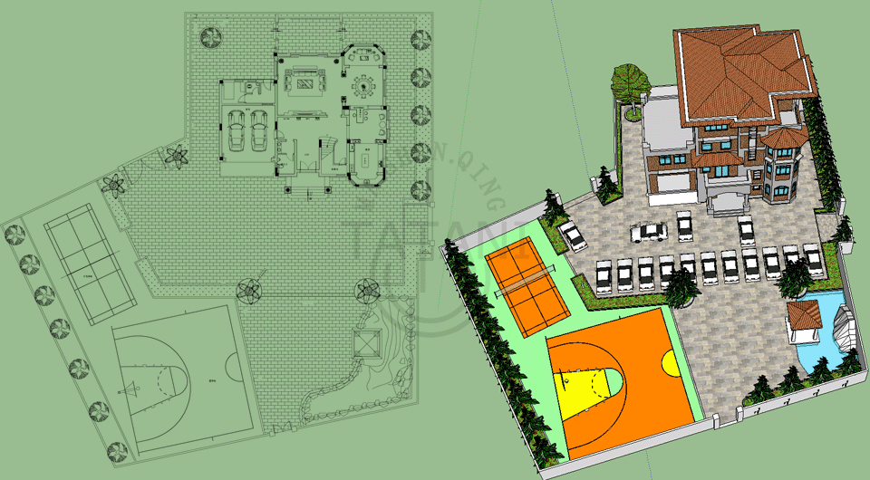 關(guān)于別墅,什么是別墅,國內(nèi)國外是有區(qū)別的,在國外只要自己擁有的是一整棟就是別墅,在國內(nèi)最開始來自開發(fā)商,獨(dú)棟、甚至連排的商品建筑,叫別墅,后來自建房參考了其設(shè)計,或者設(shè)計者加入設(shè)計后,在大家眼里也成了別墅,所以除了獨(dú)棟外,只要看起來‘像別墅’就是別墅;現(xiàn)在什么是別墅,什么是民房主要是看設(shè)計的是否豪華,所以現(xiàn)在‘有錢人’的大多叫做別墅,普通人的則沒這樣叫;主要是檔次上和用詞上的問題,不用多久用詞也會跟上國外,只要獨(dú)棟就可以叫做別墅;但現(xiàn)在在國內(nèi)設(shè)計民用建筑時叫法是有區(qū)別的,自建住宅建筑的一般可分為,民宅(民樓)、別墅(花園式)、別院; 民宅(民樓):主要是不重視外觀花園(應(yīng)該說是院子),著重保持很多傳統(tǒng)的建筑觀念;別墅則重視外觀及花園;檔次最高的是別院;占地也最大,與別墅的區(qū)別是除了主建筑,還有很多附建筑,通過花園或者走廊,把這些建筑串連在一起,充分利用花園,把生活范圍擴(kuò)到主建筑以外,圍墻以內(nèi),因為所有建筑都是組合體,不能說主建筑就是別墅,所以我把它說成是別院;當(dāng)然非傳統(tǒng)的所說的主屋以外不常住房子,因為以前‘別院’這東西,現(xiàn)在也叫別墅;屬于別墅類似的用詞,因為土地限制等關(guān)系,自建別墅除了要在國土部門所限制的紅線圖內(nèi),要在地區(qū)限高以內(nèi),還要熟悉或會建筑設(shè)計,因為自建別墅,是由一塊‘平地’開始的,另外設(shè)計還要著重考慮安全、隱私、供排系統(tǒng)的處理,及地區(qū)性風(fēng)俗習(xí)慣和風(fēng)水知識;下面以個人以往從一塊地開始設(shè)計建筑,及設(shè)計室內(nèi)裝飾的部分自建別墅建筑作為例子,當(dāng)然個人非工民建或建筑結(jié)構(gòu)設(shè)計師,梁柱等,如果業(yè)主不請建筑公司的話,我會重新以自己的經(jīng)驗,與我們的建造師協(xié)調(diào)去設(shè)計,方案圖則是對外的為的是保護(hù)自己的權(quán)益,所以方案設(shè)計不加這個; |