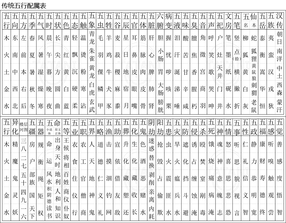 第一種,順序:金木水火土,法師或術(shù)士五行;這個(gè)順序很少有人知道用途,大家都和我初學(xué)風(fēng)的時(shí)候一樣,認(rèn)為這是混濁視聽,但后來才知道,這是術(shù)士五行,傳說中這是術(shù)士的標(biāo)志暗言,這些人也會風(fēng)水、看相之類,長年走街穿巷,但沒人敢戲弄他們,因?yàn)樗麄儠c(diǎn)穴和法術(shù),只要得罪他們就會死于非命,而且無從查找;為什么順序是金木水火土,主要是學(xué)術(shù)的學(xué)習(xí)的順序,因?yàn)榻鹂梢源盆F隔空吸附,其它就是根據(jù)這個(gè)原理,學(xué)習(xí)術(shù)的人,就由金、木、水、火、土的從易到難的順序?qū)W習(xí),可以隔空取物,隔空點(diǎn)穴等;雖然這些東西應(yīng)用一般只是自保才用的上,但起碼沒人敢戲弄他,所以一般是不是術(shù)士,為了方便走街穿巷,都說:“金木水火土”;以至聽多了,最終我們說成五行順序都是這個(gè),當(dāng)然這是其中一種說法; 第二種,順序:木火土金水,形家或陣法五行,“木火土金水,順生間克;”也就是五行生克口訣;木生火,火生土生金,金生水,水又生木,間一個(gè)字是木克土,土克水,水克火,火克金,金又克木;把五行生克描述很簡單; 第三種,順序:水火木金土,這個(gè)來自《河圖》天書,為最原始的版本;如樓層往天上做,五行是要按這個(gè)順序的,如一、六層是水,二、七是火,三、八是木,四、九是金,五、十為土; 說起五行,是這個(gè)世界的所以物體的合成元素,但個(gè)人認(rèn)為以顏色來講解和區(qū)分,更具完整的代表性,為什么這樣說呢,先說形狀,如:木長、水曲,它們的截面不是方(土)的,就是圓(金)的,如土方:不是尖(火)角就是圓(金)角,都不會是某純五行特性,另外還有他的本質(zhì),也就是它是用什么做成的,如用木做成的方塊就是“土、木”了,如穴位,正中太極暈或五色土,五色土本質(zhì)是土,卻也代表五行,所以以顏色區(qū)分是非常重用的; 以顏色區(qū)分五行重要的根椐,在人們印象中,最深莫過于清八旗,劃開敵對因素,其實(shí)‘八旗’就是五行旗,起源于漢知識,清朝也重視八卦,八旗用數(shù)八,但卻只是五行知識,因?yàn)槲逍袑W(xué)我們簡單講講‘大清’的來歷及重要?dú)v史事件,當(dāng)然這是以五行學(xué)的角度(未成年人家長指引,不要沉迷;); |