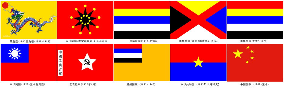 | 中國近歷史中出現(xiàn)的重要旗幟; | |||||||||